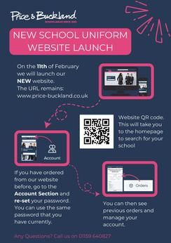 On 11th February 2025, Price and Buckland will launch their NEW uniform website - we do not hold any uniform in school - you will  need to order direct using the following URL: